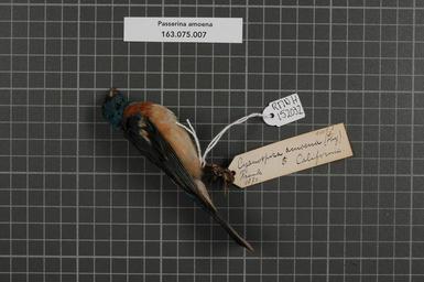 Keywords: Naturalis Biodiversity Center - RMNH.AVES.152032 1 - Passerina amoena (Say, 1823) - Emberizidae - bird skin specimen.jpeg artwork Dimensions artwork Document type Emberizidae Passerina Individual count 1 Infraspecific epithet Infraspecific rank Institution Naturalis Kind of unit artwork Kind of unit specimen skin Life stage Californie Medium artwork Nomenclatural code Occurrence ID page Other fields Other versions artwork Permission license Naturalis donation CC-0 Publication location Scientific name Passerina amoena Say 1823 Scientific name authorship Say 1823 male Source url http //bioportal naturalis nl Specific epithet amoena State or province Californie Subject keywords artwork Subject keywords publication Title artwork Title publication Type status Uploaded with GWToolset Naturalis_Biodiversity_Center_-_RMNH AVES 152032_1_-_Passerina_amoena_ Say _1823 _-_Emberizidae_-_bird_skin_specimen http //medialib naturalis nl/file/id/RMNH AVES 152032_1/format/large Media donated by Naturalis Biodiversity Center Songbird specimens at Naturalis Biodiversity Center Passerina amoena Passerina |