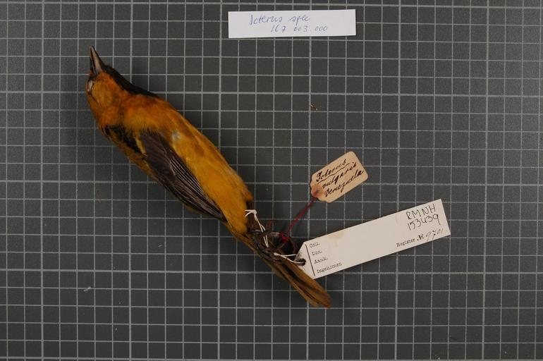 | Keywords: Naturalis Biodiversity Center - RMNH.AVES.153439 1 - Icterus spec. - Icteridae - bird skin specimen.jpeg artwork Dimensions artwork Document type Icteridae Icterus Individual count 1 Infraspecific epithet Infraspecific rank Institution Naturalis Kind of unit artwork Kind of unit specimen skin Life stage Venezuela Medium artwork Nomenclatural code Occurrence ID page Other fields Other versions artwork Permission license Naturalis donation CC-0 Publication location Scientific name Icterus spec Scientific name authorship male Source url http //bioportal naturalis nl Specific epithet spec State or province Subject keywords artwork Subject keywords publication Title artwork Title publication Type status Uploaded with GWToolset Naturalis_Biodiversity_Center_-_RMNH AVES 153439_1_-_Icterus_spec _-_Icteridae_-_bird_skin_specimen http //medialib naturalis nl/file/id/RMNH AVES 153439_1/format/large Media donated by Naturalis Biodiversity Center Songbird specimens at Naturalis Biodiversity Center Icterus Icterus |