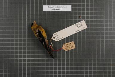 | Keywords: Naturalis Biodiversity Center - RMNH.AVES.154006 1 - Carduelis tristis salicamans (Grinnell,1897) - Fringillidae - bird skin specimen.jpeg artwork Dimensions artwork Document type Fringillidae Carduelis Individual count 1 Infraspecific epithet salicamans Infraspecific rank Institution Naturalis Kind of unit artwork Kind of unit specimen skin Life stage Californien San Francisco Medium artwork Nomenclatural code Occurrence ID page Other fields Other versions artwork Permission license Naturalis donation CC-0 Publication location Scientific name Carduelis tristis salicamans Grinnell 1897 Scientific name authorship Grinnell 1897 male Source url http //bioportal naturalis nl Specific epithet tristis State or province Californien Subject keywords artwork Subject keywords publication Title artwork Title publication Type status Uploaded with GWToolset Naturalis_Biodiversity_Center_-_RMNH AVES 154006_1_-_Carduelis_tristis_salicamans_ Grinnell 1897 _-_Fringillidae_-_bird_skin_specimen http //medialib naturalis nl/file/id/RMNH AVES 154006_1/format/large Media donated by Naturalis Biodiversity Center Songbird specimens at Naturalis Biodiversity Center Spinus tristis Carduelis |