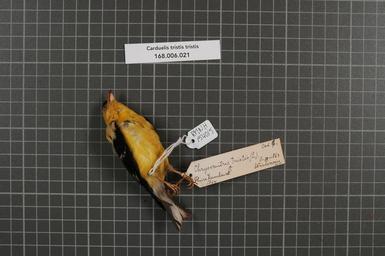 | Keywords: Naturalis Biodiversity Center - RMNH.AVES.154015 1 - Carduelis tristis tristis (Linnaeus, 1758) - Fringillidae - bird skin specimen.jpeg artwork Dimensions artwork Document type Fringillidae Carduelis Individual count 1 Infraspecific epithet tristis Infraspecific rank Institution Naturalis Kind of unit artwork Kind of unit specimen skin Life stage U S Wisconsin Medium artwork Nomenclatural code Occurrence ID page Other fields Other versions artwork Permission license Naturalis donation CC-0 Publication location Scientific name Carduelis tristis tristis Linnaeus 1758 Scientific name authorship Linnaeus 1758 male Source url http //bioportal naturalis nl Specific epithet tristis State or province Wisconsin Subject keywords artwork Subject keywords publication Title artwork Title publication Type status Uploaded with GWToolset Naturalis_Biodiversity_Center_-_RMNH AVES 154015_1_-_Carduelis_tristis_tristis_ Linnaeus _1758 _-_Fringillidae_-_bird_skin_specimen http //medialib naturalis nl/file/id/RMNH AVES 154015_1/format/large Media donated by Naturalis Biodiversity Center Songbird specimens at Naturalis Biodiversity Center Spinus tristis Carduelis |