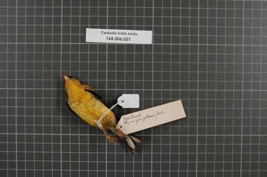 | Keywords: Naturalis Biodiversity Center - RMNH.AVES.154015 2 - Carduelis tristis tristis (Linnaeus, 1758) - Fringillidae - bird skin specimen.jpeg artwork Dimensions artwork Document type Fringillidae Carduelis Individual count 1 Infraspecific epithet tristis Infraspecific rank Institution Naturalis Kind of unit artwork Kind of unit specimen skin Life stage U S Wisconsin Medium artwork Nomenclatural code Occurrence ID page Other fields Other versions artwork Permission license Naturalis donation CC-0 Publication location Scientific name Carduelis tristis tristis Linnaeus 1758 Scientific name authorship Linnaeus 1758 male Source url http //bioportal naturalis nl Specific epithet tristis State or province Wisconsin Subject keywords artwork Subject keywords publication Title artwork Title publication Type status Uploaded with GWToolset Naturalis_Biodiversity_Center_-_RMNH AVES 154015_2_-_Carduelis_tristis_tristis_ Linnaeus _1758 _-_Fringillidae_-_bird_skin_specimen http //medialib naturalis nl/file/id/RMNH AVES 154015_2/format/large Media donated by Naturalis Biodiversity Center Songbird specimens at Naturalis Biodiversity Center Spinus tristis Carduelis |