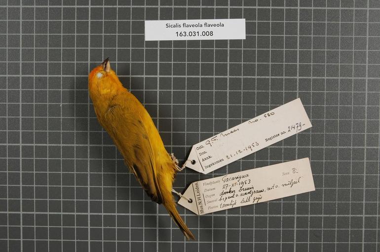 View Original:Naturalis Biodiversity Center - RMNH.AVES.21479 1 - Sicalis flaveola flaveola (Linnaeus, 1766) - Emberizidae - bird skin specimen.jpeg (1920x1277)