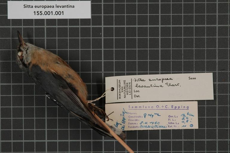 Keywords: Naturalis Biodiversity Center - RMNH.AVES.29163 1 - Sitta europaea levantina Hartert, 1905 - Sittidae - bird skin specimen.jpeg artwork Dimensions artwork Document type Sittidae Sitta Individual count 1 Infraspecific epithet levantina Infraspecific rank Institution Naturalis Kind of unit artwork Kind of unit specimen skin Life stage Türkei Burdur Medium artwork Nomenclatural code Bodily condition starker brutfleck ADDITIONAL info see drawing dot in circle Occurrence ID page Other fields Other versions artwork Permission license Naturalis donation CC-0 Publication location Scientific name Sitta europaea levantina Hartert 1905 Scientific name authorship Hartert 1905 female Source url http //bioportal naturalis nl Specific epithet europaea State or province Burdur Subject keywords artwork Subject keywords publication Title artwork Title publication Type status Uploaded with GWToolset Naturalis_Biodiversity_Center_-_RMNH AVES 29163_1_-_Sitta_europaea_levantina_Hartert _1905_-_Sittidae_-_bird_skin_specimen http //medialib naturalis nl/file/id/RMNH AVES 29163_1/format/large Media donated by Naturalis Biodiversity Center Songbird specimens at Naturalis Biodiversity Center Sitta europaea Sitta |