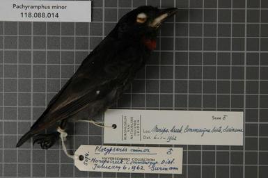 Keywords: Naturalis Biodiversity Center - RMNH.AVES.33644 1 - Pachyramphus minor (Lesson, 1830) - Tyrannidae - bird skin specimen.jpeg artwork Dimensions artwork Document type Tyrannidae Pachyramphus Individual count 1 Infraspecific epithet Infraspecific rank Institution Naturalis Kind of unit artwork Kind of unit specimen skin Life stage Suriname Commewijne distr Moripocreek Medium artwork Nomenclatural code ADDITIONAL FAMILY INFO Nest building with no 5075 Occurrence ID page Other fields Other versions artwork Permission license Naturalis donation CC-0 Publication location Scientific name Pachyramphus minor Lesson 1830 Scientific name authorship Lesson 1830 male Source url http //bioportal naturalis nl Specific epithet minor State or province Commewijne distr Subject keywords artwork Subject keywords publication Title artwork Title publication Type status Uploaded with GWToolset Naturalis_Biodiversity_Center_-_RMNH AVES 33644_1_-_Pachyramphus_minor_ Lesson _1830 _-_Tyrannidae_-_bird_skin_specimen http //medialib naturalis nl/file/id/RMNH AVES 33644_1/format/large Media donated by Naturalis Biodiversity Center Songbird specimens at Naturalis Biodiversity Center Pachyramphus minor Pachyramphus |