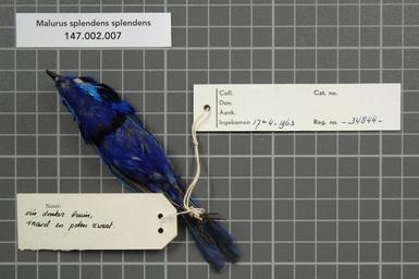 Keywords: Naturalis Biodiversity Center - RMNH.AVES.34844 2 - Malurus splendens splendens (Quoy & Gaimard, 1830) - Maluridae - bird skin specimen.jpeg artwork Dimensions artwork Document type Maluridae Malurus Individual count 1 Infraspecific epithet splendens Infraspecific rank Institution Naturalis Kind of unit artwork Kind of unit specimen skin Life stage Murchison River Crossing Medium artwork Nomenclatural code Occurrence ID page Other fields Other versions artwork Permission license Naturalis donation CC-0 Publication location Scientific name Malurus splendens splendens Quoy Gaimard 1830 Scientific name authorship Quoy Gaimard 1830 male Source url http //bioportal naturalis nl Specific epithet splendens State or province Subject keywords artwork Subject keywords publication Title artwork Title publication Type status Uploaded with GWToolset Naturalis_Biodiversity_Center_-_RMNH AVES 34844_2_-_Malurus_splendens_splendens_ Quoy_ _Gaimard _1830 _-_Maluridae_-_bird_skin_specimen http //medialib naturalis nl/file/id/RMNH AVES 34844_2/format/large Media donated by Naturalis Biodiversity Center Songbird specimens at Naturalis Biodiversity Center Malurus splendens Malurus |