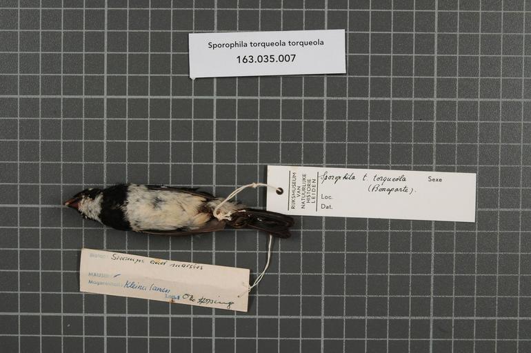 View Original:Naturalis Biodiversity Center - RMNH.AVES.35076 2 - Sporophila torqueola torqueola (Bonaparte, 1851) - Emberizidae - bird skin specimen.jpeg (1920x1277)