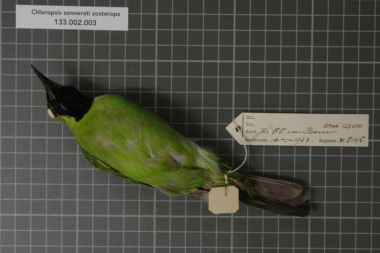 Keywords: Naturalis Biodiversity Center - RMNH.AVES.127000 2 - Chloropsis sonnerati zosterops Vigors & Horsfield, 1830 - Irenidae - bird skin specimen.jpeg artwork Dimensions artwork Document type Irenidae Chloropsis Individual count 1 Infraspecific epithet zosterops Infraspecific rank Kind of unit artwork Kind of unit specimen skin Life stage Langkat Telaga Sait bij Pengkalan Brandan Medium artwork Nomenclatural code Locality remark On RMNH label Pengkalan Brandan Should probably be Pangkalanbrandan Occurrence ID Other fields Other versions artwork Permission license Naturalis donation CC-0 Publication location Scientific name Chloropsis sonnerati zosterops Vigors Horsfield 1830 Scientific name authorship Vigors Horsfield 1830 male Source url Specific epithet sonnerati State or province Langkat Subject keywords artwork Subject keywords publication Title artwork Title publication Type status Uploaded with GWToolset Naturalis_Biodiversity_Center_-_RMNH AVES 127000_2_-_Chloropsis_sonnerati_zosterops_Vigors_ _Horsfield _1830_-_Irenidae_-_bird_skin_specimen http //medialib naturalis nl/file/id/RMNH AVES 127000_2/format/large Media donated by Naturalis Biodiversity Center Songbird specimens at Naturalis Biodiversity Center Chloropsis sonnerati Chloropsis |
