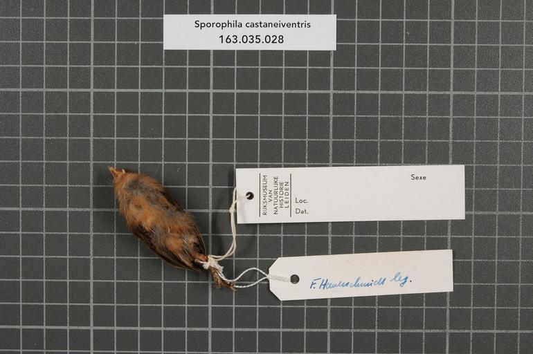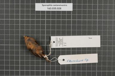 View Original:Naturalis Biodiversity Center - RMNH.AVES.35755 2 - Sporophila castaneiventris Cabanis, 1849 - Emberizidae - bird skin specimen.jpeg (1920x1277)