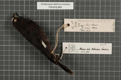 Keywords: Naturalis Biodiversity Center - RMNH.AVES.36728 1 - Amblyospiza albifrons montana van Someren, 1921 - Ploceidae - bird skin specimen.jpeg artwork Dimensions artwork Document type Ploceidae Amblyospiza Individual count 1 Infraspecific epithet montana Infraspecific rank Institution Naturalis Kind of unit artwork Kind of unit specimen skin Life stage Tanzania Mtwara Distr Mikindani Medium artwork Nomenclatural code Occurrence ID page Other fields Other versions artwork Permission license Naturalis donation CC-0 Publication location Scientific name Amblyospiza albifrons montana van Someren 1921 Scientific name authorship van Someren 1921 male Source url http //bioportal naturalis nl Specific epithet albifrons State or province Mtwara Distr Subject keywords artwork Subject keywords publication Title artwork Title publication Type status Uploaded with GWToolset Naturalis_Biodiversity_Center_-_RMNH AVES 36728_1_-_Amblyospiza_albifrons_montana_van_Someren _1921_-_Ploceidae_-_bird_skin_specimen http //medialib naturalis nl/file/id/RMNH AVES 36728_1/format/large Media donated by Naturalis Biodiversity Center Songbird specimens at Naturalis Biodiversity Center Amblyospiza albifrons Amblyospiza |