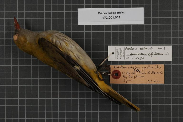 Keywords: Naturalis Biodiversity Center - RMNH.AVES.56694 1 - Oriolus oriolus oriolus (Linnaeus, 1758) - Oriolidae - bird skin specimen.jpeg artwork Dimensions artwork Document type Oriolidae Oriolus Individual count 1 Infraspecific epithet oriolus Infraspecific rank Institution Naturalis Kind of unit artwork Kind of unit specimen skin Life stage Limburg Kast Hillenraad Swalmen Medium artwork Nomenclatural code ADDITIONAL FAMILY INFO vormde met male No 69 een paar Sex remark on label Hens female on label Hens male juv Occurrence ID page Other fields Other versions artwork Permission license Naturalis donation CC-0 Publication location Scientific name Oriolus oriolus oriolus Linnaeus 1758 Scientific name authorship Linnaeus 1758 female Source url http //bioportal naturalis nl Specific epithet oriolus State or province Limburg Subject keywords artwork Subject keywords publication Title artwork Title publication Type status Uploaded with GWToolset Naturalis_Biodiversity_Center_-_RMNH AVES 56694_1_-_Oriolus_oriolus_oriolus_ Linnaeus _1758 _-_Oriolidae_-_bird_skin_specimen http //medialib naturalis nl/file/id/RMNH AVES 56694_1/format/large Media donated by Naturalis Biodiversity Center Songbird specimens at Naturalis Biodiversity Center Oriolus oriolus Oriolus |