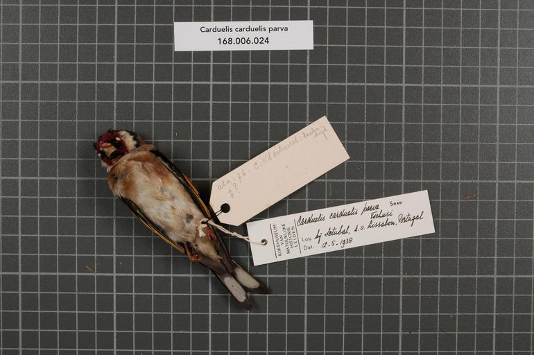| Keywords: Naturalis Biodiversity Center - RMNH.AVES.56832 2 - Carduelis carduelis parva Tschusi, 1901 - Fringillidae - bird skin specimen.jpeg  artwork Dimensions artwork Document type Fringillidae Carduelis Individual count 1 Infraspecific epithet parva Infraspecific rank Institution Naturalis Kind of unit artwork Kind of unit specimen skin Life stage Portugal bij Setubal Z v Lissabon Medium artwork Nomenclatural code Sex remark on label male Occurrence ID page Other fields Other versions artwork Permission license Naturalis donation CC-0 Publication location Scientific name Carduelis carduelis parva Tschusi 1901 Scientific name authorship Tschusi 1901 male Source url http //bioportal naturalis nl Specific epithet carduelis State or province Subject keywords artwork Subject keywords publication Title artwork Title publication Type status Uploaded with GWToolset Naturalis_Biodiversity_Center_-_RMNH AVES 56832_2_-_Carduelis_carduelis_parva_Tschusi _1901_-_Fringillidae_-_bird_skin_specimen http //medialib naturalis nl/file/id/RMNH AVES 56832_2/format/large Media donated by Naturalis Biodiversity Center Songbird specimens at Naturalis Biodiversity Center Carduelis carduelis Carduelis |