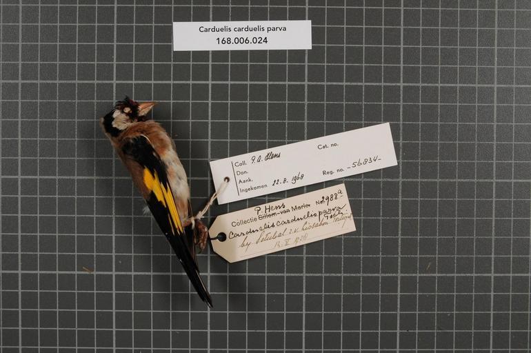 | Keywords: Naturalis Biodiversity Center - RMNH.AVES.56834 1 - Carduelis carduelis parva Tschusi, 1901 - Fringillidae - bird skin specimen.jpeg  artwork Dimensions artwork Document type Fringillidae Carduelis Individual count 1 Infraspecific epithet parva Infraspecific rank Institution Naturalis Kind of unit artwork Kind of unit specimen skin Life stage Portugal bij Setubal Z v Lissabon Medium artwork Nomenclatural code Occurrence ID page Other fields Other versions artwork Permission license Naturalis donation CC-0 Publication location Scientific name Carduelis carduelis parva Tschusi 1901 Scientific name authorship Tschusi 1901 Source url http //bioportal naturalis nl Specific epithet carduelis State or province Subject keywords artwork Subject keywords publication Title artwork Title publication Type status Uploaded with GWToolset Naturalis_Biodiversity_Center_-_RMNH AVES 56834_1_-_Carduelis_carduelis_parva_Tschusi _1901_-_Fringillidae_-_bird_skin_specimen http //medialib naturalis nl/file/id/RMNH AVES 56834_1/format/large Media donated by Naturalis Biodiversity Center Songbird specimens at Naturalis Biodiversity Center Carduelis carduelis Carduelis |