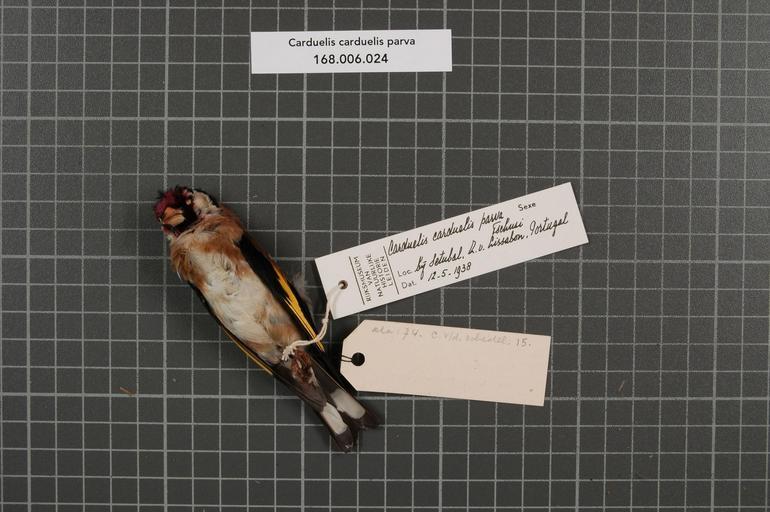 | Keywords: Naturalis Biodiversity Center - RMNH.AVES.56834 2 - Carduelis carduelis parva Tschusi, 1901 - Fringillidae - bird skin specimen.jpeg  artwork Dimensions artwork Document type Fringillidae Carduelis Individual count 1 Infraspecific epithet parva Infraspecific rank Institution Naturalis Kind of unit artwork Kind of unit specimen skin Life stage Portugal bij Setubal Z v Lissabon Medium artwork Nomenclatural code Occurrence ID page Other fields Other versions artwork Permission license Naturalis donation CC-0 Publication location Scientific name Carduelis carduelis parva Tschusi 1901 Scientific name authorship Tschusi 1901 Source url http //bioportal naturalis nl Specific epithet carduelis State or province Subject keywords artwork Subject keywords publication Title artwork Title publication Type status Uploaded with GWToolset Naturalis_Biodiversity_Center_-_RMNH AVES 56834_2_-_Carduelis_carduelis_parva_Tschusi _1901_-_Fringillidae_-_bird_skin_specimen http //medialib naturalis nl/file/id/RMNH AVES 56834_2/format/large Media donated by Naturalis Biodiversity Center Songbird specimens at Naturalis Biodiversity Center Carduelis carduelis Carduelis |