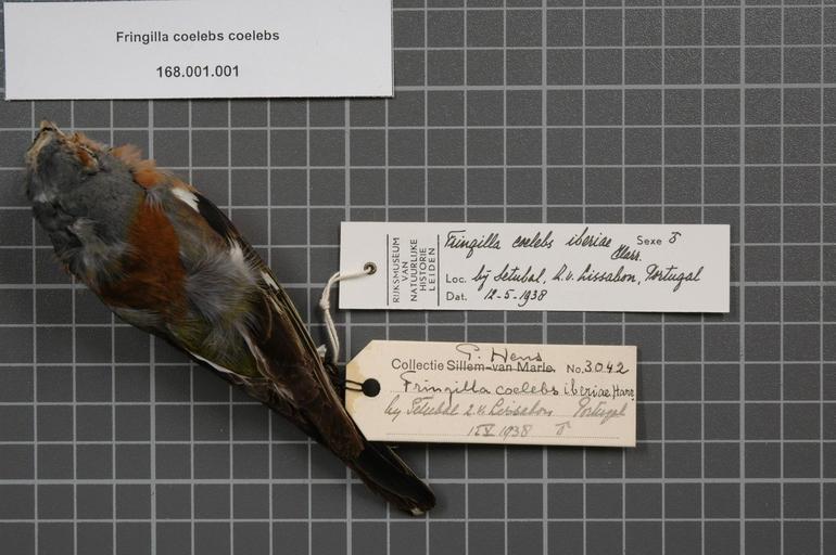 | Keywords: Naturalis Biodiversity Center - RMNH.AVES.57136 1 - Fringilla coelebs coelebs Linnaeus, 1758 - Fringillidae - bird skin specimen.jpeg  artwork Dimensions artwork Document type Fringillidae Fringilla Individual count 1 Infraspecific epithet coelebs Infraspecific rank Institution Naturalis Kind of unit artwork Kind of unit specimen skin Life stage Portugal bij Setubal Z van Lissabon Medium artwork Nomenclatural code Occurrence ID page Other fields Other versions artwork Permission license Naturalis donation CC-0 Publication location Scientific name Fringilla coelebs coelebs Linnaeus 1758 Scientific name authorship Linnaeus 1758 male Source url http //bioportal naturalis nl Specific epithet coelebs State or province Subject keywords artwork Subject keywords publication Title artwork Title publication Type status Uploaded with GWToolset Naturalis_Biodiversity_Center_-_RMNH AVES 57136_1_-_Fringilla_coelebs_coelebs_Linnaeus _1758_-_Fringillidae_-_bird_skin_specimen http //medialib naturalis nl/file/id/RMNH AVES 57136_1/format/large Media donated by Naturalis Biodiversity Center Songbird specimens at Naturalis Biodiversity Center Fringilla coelebs Fringilla |