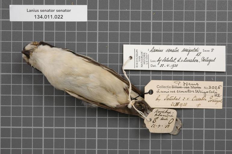 | Keywords: Naturalis Biodiversity Center - RMNH.AVES.58013 1 - Lanius senator senator Linnaeus, 1758 - Laniidae - bird skin specimen.jpeg  artwork Dimensions artwork Document type Laniidae Lanius Individual count 1 Infraspecific epithet senator Infraspecific rank Institution Naturalis Kind of unit artwork Kind of unit specimen skin Life stage Portugal bij Setubal Z van Lissabon Medium artwork Nomenclatural code Occurrence ID page Other fields Other versions artwork Permission license Naturalis donation CC-0 Publication location Scientific name Lanius senator senator Linnaeus 1758 Scientific name authorship Linnaeus 1758 male Source url http //bioportal naturalis nl Specific epithet senator State or province Subject keywords artwork Subject keywords publication Title artwork Title publication Type status Uploaded with GWToolset Naturalis_Biodiversity_Center_-_RMNH AVES 58013_1_-_Lanius_senator_senator_Linnaeus _1758_-_Laniidae_-_bird_skin_specimen http //medialib naturalis nl/file/id/RMNH AVES 58013_1/format/large Media donated by Naturalis Biodiversity Center Songbird specimens at Naturalis Biodiversity Center Lanius senator Lanius |