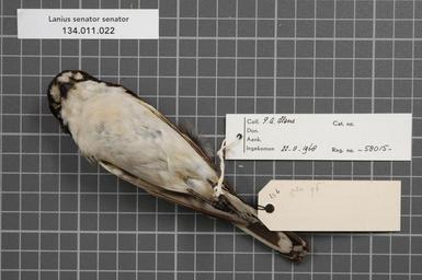 | Keywords: Naturalis Biodiversity Center - RMNH.AVES.58015 2 - Lanius senator senator Linnaeus, 1758 - Laniidae - bird skin specimen.jpeg  artwork Dimensions artwork Document type Laniidae Lanius Individual count 1 Infraspecific epithet senator Infraspecific rank Institution Naturalis Kind of unit artwork Kind of unit specimen skin Life stage Portugal bij Setubal Z van Lissabon Medium artwork Nomenclatural code Sex remark On Hens label 'male' Occurrence ID page Other fields Other versions artwork Permission license Naturalis donation CC-0 Publication location Scientific name Lanius senator senator Linnaeus 1758 Scientific name authorship Linnaeus 1758 male Source url http //bioportal naturalis nl Specific epithet senator State or province Subject keywords artwork Subject keywords publication Title artwork Title publication Type status Uploaded with GWToolset Naturalis_Biodiversity_Center_-_RMNH AVES 58015_2_-_Lanius_senator_senator_Linnaeus _1758_-_Laniidae_-_bird_skin_specimen http //medialib naturalis nl/file/id/RMNH AVES 58015_2/format/large Media donated by Naturalis Biodiversity Center Songbird specimens at Naturalis Biodiversity Center Lanius senator Lanius |