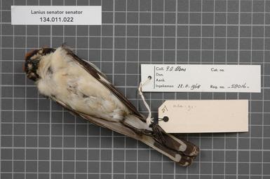 | Keywords: Naturalis Biodiversity Center - RMNH.AVES.58016 2 - Lanius senator senator Linnaeus, 1758 - Laniidae - bird skin specimen.jpeg  artwork Dimensions artwork Document type Laniidae Lanius Individual count 1 Infraspecific epithet senator Infraspecific rank Institution Naturalis Kind of unit artwork Kind of unit specimen skin Life stage Portugal bij Setubal Z van Lissabon Medium artwork Nomenclatural code Sex remark On Hens label 'male' Occurrence ID page Other fields Other versions artwork Permission license Naturalis donation CC-0 Publication location Scientific name Lanius senator senator Linnaeus 1758 Scientific name authorship Linnaeus 1758 male Source url http //bioportal naturalis nl Specific epithet senator State or province Subject keywords artwork Subject keywords publication Title artwork Title publication Type status Uploaded with GWToolset Naturalis_Biodiversity_Center_-_RMNH AVES 58016_2_-_Lanius_senator_senator_Linnaeus _1758_-_Laniidae_-_bird_skin_specimen http //medialib naturalis nl/file/id/RMNH AVES 58016_2/format/large Media donated by Naturalis Biodiversity Center Songbird specimens at Naturalis Biodiversity Center Lanius senator Lanius |