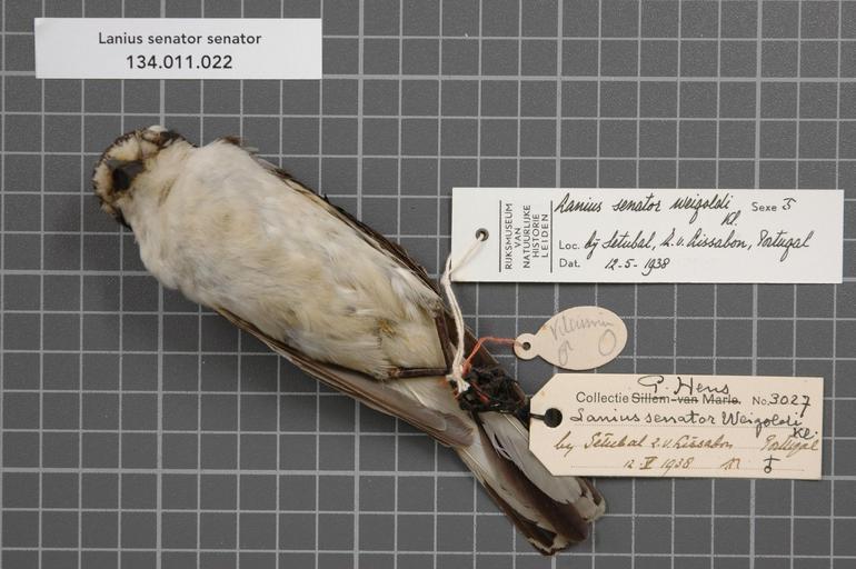 | Keywords: Naturalis Biodiversity Center - RMNH.AVES.58019 1 - Lanius senator senator Linnaeus, 1758 - Laniidae - bird skin specimen.jpeg  artwork Dimensions artwork Document type Laniidae Lanius Individual count 1 Infraspecific epithet senator Infraspecific rank Institution Naturalis Kind of unit artwork Kind of unit specimen skin Life stage Portugal bij Setubal Z van Lissabon Medium artwork Nomenclatural code Occurrence ID page Other fields Other versions artwork Permission license Naturalis donation CC-0 Publication location Scientific name Lanius senator senator Linnaeus 1758 Scientific name authorship Linnaeus 1758 male Source url http //bioportal naturalis nl Specific epithet senator State or province Subject keywords artwork Subject keywords publication Title artwork Title publication Type status Uploaded with GWToolset Naturalis_Biodiversity_Center_-_RMNH AVES 58019_1_-_Lanius_senator_senator_Linnaeus _1758_-_Laniidae_-_bird_skin_specimen http //medialib naturalis nl/file/id/RMNH AVES 58019_1/format/large Media donated by Naturalis Biodiversity Center Songbird specimens at Naturalis Biodiversity Center Lanius senator Lanius |