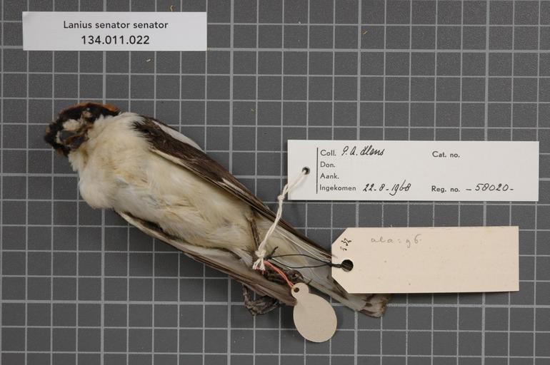 | Keywords: Naturalis Biodiversity Center - RMNH.AVES.58020 2 - Lanius senator senator Linnaeus, 1758 - Laniidae - bird skin specimen.jpeg  artwork Dimensions artwork Document type Laniidae Lanius Individual count 1 Infraspecific epithet senator Infraspecific rank Institution Naturalis Kind of unit artwork Kind of unit specimen skin Life stage Portugal bij Setubal Z van Lissabon Medium artwork Nomenclatural code Occurrence ID page Other fields Other versions artwork Permission license Naturalis donation CC-0 Publication location Scientific name Lanius senator senator Linnaeus 1758 Scientific name authorship Linnaeus 1758 male Source url http //bioportal naturalis nl Specific epithet senator State or province Subject keywords artwork Subject keywords publication Title artwork Title publication Type status Uploaded with GWToolset Naturalis_Biodiversity_Center_-_RMNH AVES 58020_2_-_Lanius_senator_senator_Linnaeus _1758_-_Laniidae_-_bird_skin_specimen http //medialib naturalis nl/file/id/RMNH AVES 58020_2/format/large Media donated by Naturalis Biodiversity Center Songbird specimens at Naturalis Biodiversity Center Lanius senator Lanius |