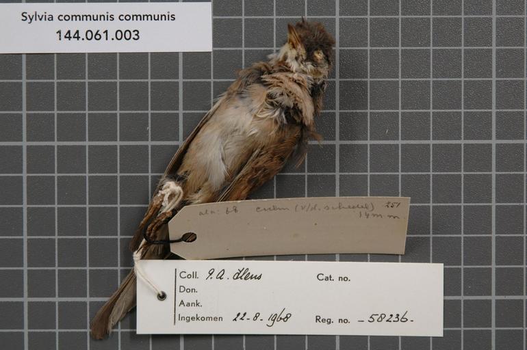 | Keywords: Naturalis Biodiversity Center - RMNH.AVES.58236 2 - Sylvia communis communis Latham, 1787 - Sylviidae - bird skin specimen.jpeg  artwork Dimensions artwork Document type Sylviidae Sylvia Individual count 1 Infraspecific epithet communis Infraspecific rank Institution Naturalis Kind of unit artwork Kind of unit specimen skin Life stage Portugal bij Setubal Z v Lissabon Medium artwork Nomenclatural code Occurrence ID page Other fields Other versions artwork Permission license Naturalis donation CC-0 Publication location Scientific name Sylvia communis communis Latham 1787 Scientific name authorship Latham 1787 male Source url http //bioportal naturalis nl Specific epithet communis State or province Subject keywords artwork Subject keywords publication Title artwork Title publication Type status Uploaded with GWToolset Naturalis_Biodiversity_Center_-_RMNH AVES 58236_2_-_Sylvia_communis_communis_Latham _1787_-_Sylviidae_-_bird_skin_specimen http //medialib naturalis nl/file/id/RMNH AVES 58236_2/format/large Media donated by Naturalis Biodiversity Center Songbird specimens at Naturalis Biodiversity Center Sylvia communis Sylvia |