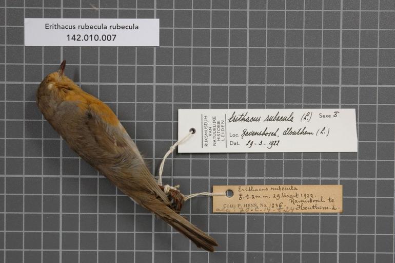 | Keywords: Naturalis Biodiversity Center - RMNH.AVES.58569 1- - Erithacus rubecula rubecula (Linnaeus, 1758) - Turdidae - bird skin specimen.jpeg artwork Dimensions artwork Document type Turdidae Erithacus Individual count 1 Infraspecific epithet rubecula Infraspecific rank Institution Naturalis Kind of unit artwork Kind of unit specimen skin Life stage L Houthem Ravensbosch Medium artwork Nomenclatural code Bodily condition zeer vet ADDITIONAL info 29 Maart 1922 W wind Sneeuwstormen Occurrence ID page Other fields Other versions artwork Permission license Naturalis donation CC-0 Publication location Scientific name Erithacus rubecula rubecula Linnaeus 1758 Scientific name authorship Linnaeus 1758 male Source url http //bioportal naturalis nl Specific epithet rubecula State or province L Subject keywords artwork Subject keywords publication Title artwork Title publication Type status Uploaded with GWToolset Naturalis_Biodiversity_Center_-_RMNH AVES 58569_1 _-_Erithacus_rubecula_rubecula_ Linnaeus _1758 _-_Turdidae_-_bird_skin_specimen http //medialib naturalis nl/file/id/RMNH AVES 58569_1/format/large Media donated by Naturalis Biodiversity Center Songbird specimens at Naturalis Biodiversity Center Erithacus rubecula rubecula taxidermied |