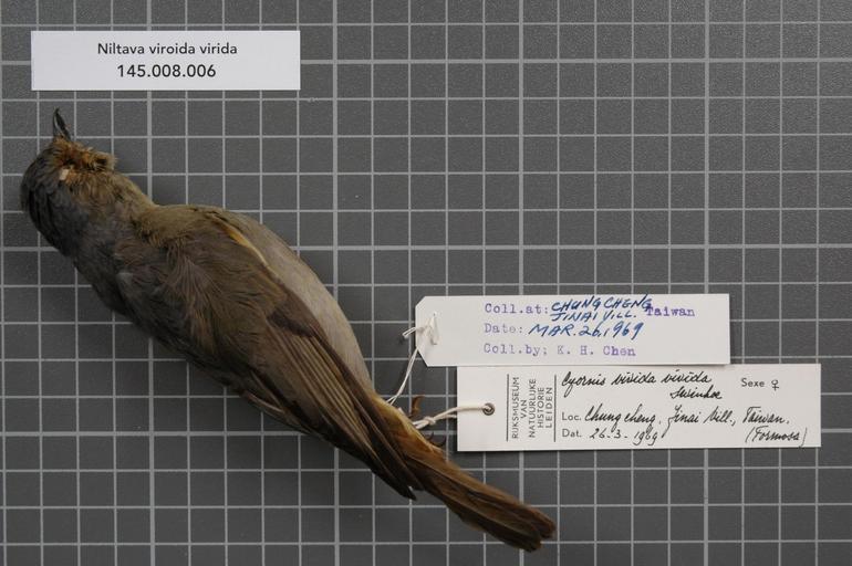 | Keywords: Naturalis Biodiversity Center - RMNH.AVES.59070 1- - Niltava vivida vivida (Swinhoe, 1864) - Muscicapidae - bird skin specimen.jpeg artwork Dimensions artwork Document type Muscicapidae Niltava Individual count 1 Infraspecific epithet vivida Infraspecific rank Institution Naturalis Kind of unit artwork Kind of unit specimen skin Life stage Taiwan Chung Cheng Jinai Vill Medium artwork Nomenclatural code General remarks Species name label in top left corner Niltava viroida virida 145 008 006 contains errors Correct name is Niltava vividvivida Label Chen also contains some text in Japanese / Tiwanese Country remark on label Taiwan Formosa Occurrence ID page Other fields Other versions artwork Permission license Naturalis donation CC-0 Publication location Scientific name Niltava vivida vivida Swinhoe 1864 Scientific name authorship Swinhoe 1864 female Source url http //bioportal naturalis nl Specific epithet vivida State or province Subject keywords artwork Subject keywords publication Title artwork Title publication Type status Uploaded with GWToolset Naturalis_Biodiversity_Center_-_RMNH AVES 59070_1 _-_Niltava_vivida_vivida_ Swinhoe _1864 _-_Muscicapidae_-_bird_skin_specimen http //medialib naturalis nl/file/id/RMNH AVES 59070_1/format/large Media donated by Naturalis Biodiversity Center Songbird specimens at Naturalis Biodiversity Center Niltava vivida museum specimens |