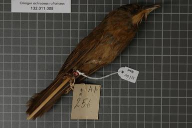 | Keywords: Naturalis Biodiversity Center - RMNH.AVES.129733 2 - Criniger ochraceus ruficrissus Sharpe, 1879 - Pycnonotidae - bird skin specimen.jpeg artwork Dimensions artwork Document type Pycnonotidae Criniger Individual count 1 Infraspecific epithet ruficrissus Infraspecific rank Institution Naturalis Kind of unit artwork Kind of unit specimen skin Life stage Medium artwork Nomenclatural code Additional info D Additional info remark comment recorder F probably is symbol not letter F Occurrence ID page Other fields Other versions artwork Permission license Naturalis donation CC-0 Publication location Scientific name Criniger ochraceus ruficrissus Sharpe 1879 Scientific name authorship Sharpe 1879 male Source url http //bioportal naturalis nl Specific epithet ochraceus State or province C Borneo Subject keywords artwork Subject keywords publication Title artwork Title publication Type status Uploaded with GWToolset Naturalis_Biodiversity_Center_-_RMNH AVES 129733_2_-_Criniger_ochraceus_ruficrissus_Sharpe _1879_-_Pycnonotidae_-_bird_skin_specimen http //medialib naturalis nl/file/id/RMNH AVES 129733_2/format/large Media donated by Naturalis Biodiversity Center Songbird specimens at Naturalis Biodiversity Center Criniger ochraceus Criniger |