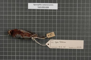 View Original:Naturalis Biodiversity Center - RMNH.AVES.6640 2 - Sporophila castaneiventris Cabanis, 1849 - Emberizidae - bird skin specimen.jpeg (1920x1277)