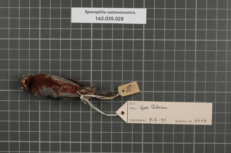 Keywords: Naturalis Biodiversity Center - RMNH.AVES.6640 2 - Sporophila castaneiventris Cabanis, 1849 - Emberizidae - bird skin specimen.jpeg artwork Dimensions artwork Document type Emberizidae Sporophila Individual count 1 Infraspecific epithet Infraspecific rank Institution Naturalis Kind of unit artwork Kind of unit specimen skin Life stage Brazilie Manaos Medium artwork Nomenclatural code Occurrence ID page Other fields Other versions artwork Permission license Naturalis donation CC-0 Publication location Scientific name Sporophila castaneiventris Cabanis 1849 Scientific name authorship Cabanis 1849 male Source url http //bioportal naturalis nl Specific epithet castaneiventris State or province Subject keywords artwork Subject keywords publication Title artwork Title publication Type status Uploaded with GWToolset Naturalis_Biodiversity_Center_-_RMNH AVES 6640_2_-_Sporophila_castaneiventris_Cabanis _1849_-_Emberizidae_-_bird_skin_specimen http //medialib naturalis nl/file/id/RMNH AVES 6640_2/format/large Media donated by Naturalis Biodiversity Center Songbird specimens at Naturalis Biodiversity Center Sporophila castaneiventris Sporophila