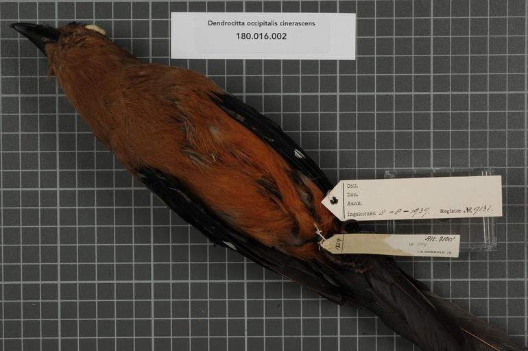 Keywords: Naturalis Biodiversity Center - RMNH.AVES.9131 2 - Dendrocitta occipitalis cinerascens Sharpe, 1879 - Corvidae - bird skin specimen.jpeg artwork Dimensions artwork Document type Corvidae Dendrocitta Individual count 1 Infraspecific epithet cinerascens Infraspecific rank Institution Naturalis Kind of unit artwork Kind of unit specimen skin Life stage Indonesia Borneo Mt Kinabalu Kiau Medium artwork Nomenclatural code ADDITIONAL info BN ADDITIONAL info remark probably North Borneo Occurrence ID page Other fields Other versions artwork Permission license Naturalis donation CC-0 Publication location Scientific name Dendrocitta occipitalis cinerascens Sharpe 1879 Scientific name authorship Sharpe 1879 male Source url http //bioportal naturalis nl Specific epithet occipitalis State or province Subject keywords artwork Subject keywords publication Title artwork Title publication Type status Uploaded with GWToolset Naturalis_Biodiversity_Center_-_RMNH AVES 9131_2_-_Dendrocitta_occipitalis_cinerascens_Sharpe _1879_-_Corvidae_-_bird_skin_specimen http //medialib naturalis nl/file/id/RMNH AVES 9131_2/format/large Media donated by Naturalis Biodiversity Center Songbird specimens at Naturalis Biodiversity Center Dendrocitta cinerascens museum specimens |