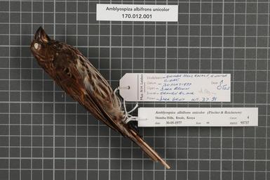 Keywords: Naturalis Biodiversity Center - RMNH.AVES.95737 1 - Amblyospiza albifrons unicolor (Fischer and Reichenow, 1878) - Ploceidae - bird skin specimen.jpeg artwork Dimensions artwork Document type Ploceidae Amblyospiza Individual count 1 Infraspecific epithet unicolor Infraspecific rank Institution Naturalis Kind of unit artwork Kind of unit specimen skin Life stage Kenya Coast Kwale Shimba Hills Medium artwork Nomenclatural code Occurrence ID page Other fields Other versions artwork Permission license Naturalis donation CC-0 Publication location Scientific name Amblyospiza albifrons unicolor Fischer and Reichenow 1878 Scientific name authorship Fischer and Reichenow 1878 male Source url http //bioportal naturalis nl Specific epithet albifrons State or province Coast Kwale Shimba Hills Subject keywords artwork Subject keywords publication Title artwork Title publication Type status Uploaded with GWToolset Naturalis_Biodiversity_Center_-_RMNH AVES 95737_1_-_Amblyospiza_albifrons_unicolor_ Fischer_and_Reichenow _1878 _-_Ploceidae_-_bird_skin_specimen http //medialib naturalis nl/file/id/RMNH AVES 95737_1/format/large Media donated by Naturalis Biodiversity Center Songbird specimens at Naturalis Biodiversity Center Amblyospiza albifrons museum specimens |
