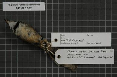 Keywords: Naturalis Biodiversity Center - RMNH.AVES.84406 2 - Rhipidura rufifrons hamadryas Sclater, 1883 - Monarchidae - bird skin specimen.jpeg artwork Dimensions artwork Document type Monarchidae Rhipidura Individual count 1 Infraspecific epithet hamadryas Infraspecific rank Institution Naturalis Kind of unit artwork Kind of unit specimen skin Life stage Tanimbar Is c 6km NW of Bomaki Yamdena Medium artwork Nomenclatural code ADDITIONAL info BN Occurrence ID page Other fields Other versions artwork Permission license Naturalis donation CC-0 Publication location Scientific name Rhipidura rufifrons hamadryas Sclater 1883 Scientific name authorship Sclater 1883 male Source url http //bioportal naturalis nl Specific epithet rufifrons State or province Tanimbar Is Subject keywords artwork Subject keywords publication Title artwork Title publication Type status Uploaded with GWToolset Naturalis_Biodiversity_Center_-_RMNH AVES 84406_2_-_Rhipidura_rufifrons_hamadryas_Sclater _1883_-_Monarchidae_-_bird_skin_specimen http //medialib naturalis nl/file/id/RMNH AVES 84406_2/format/large Media donated by Naturalis Biodiversity Center Songbird specimens at Naturalis Biodiversity Center Rhipidura rufifrons |