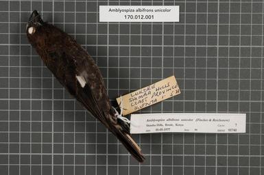 Keywords: Naturalis Biodiversity Center - RMNH.AVES.95740 1 - Amblyospiza albifrons unicolor (Fischer and Reichenow, 1878) - Ploceidae - bird skin specimen.jpeg artwork Dimensions artwork Document type Ploceidae Amblyospiza Individual count 1 Infraspecific epithet unicolor Infraspecific rank Institution Naturalis Kind of unit artwork Kind of unit specimen skin Life stage Kenya Coast Province Kwale Shimba Hills Lukore Medium artwork Nomenclatural code Occurrence ID page Other fields Other versions artwork Permission license Naturalis donation CC-0 Publication location Scientific name Amblyospiza albifrons unicolor Fischer and Reichenow 1878 Scientific name authorship Fischer and Reichenow 1878 male Source url http //bioportal naturalis nl Specific epithet albifrons State or province Coast Province Kwale Shimba Hills Subject keywords artwork Subject keywords publication Title artwork Title publication Type status Uploaded with GWToolset Naturalis_Biodiversity_Center_-_RMNH AVES 95740_1_-_Amblyospiza_albifrons_unicolor_ Fischer_and_Reichenow _1878 _-_Ploceidae_-_bird_skin_specimen http //medialib naturalis nl/file/id/RMNH AVES 95740_1/format/large Media donated by Naturalis Biodiversity Center Songbird specimens at Naturalis Biodiversity Center Amblyospiza albifrons museum specimens |