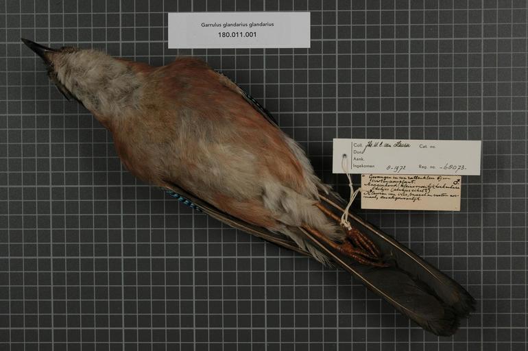 Keywords: Naturalis Biodiversity Center - RMNH.AVES.68073 2 - Garrulus glandarius glandarius (Linnaeus, 1758) - Corvidae - bird skin specimen.jpeg artwork Dimensions artwork Document type Corvidae Garrulus Individual count 1 Infraspecific epithet glandarius Infraspecific rank Institution Naturalis Kind of unit artwork Kind of unit specimen skin Life stage Netherlands Gelderland Wilp Kleine Noordijk Medium artwork Nomenclatural code ADDITIONAL info see drawing circle preceding name Occurrence ID page Other fields Other versions artwork Permission license Naturalis donation CC-0 Publication location Scientific name Garrulus glandarius glandarius Linnaeus 1758 Scientific name authorship Linnaeus 1758 male Source url http //bioportal naturalis nl Specific epithet glandarius State or province Gelderland Subject keywords artwork Subject keywords publication Title artwork Title publication Type status Uploaded with GWToolset Naturalis_Biodiversity_Center_-_RMNH AVES 68073_2_-_Garrulus_glandarius_glandarius_ Linnaeus _1758 _-_Corvidae_-_bird_skin_specimen http //medialib naturalis nl/file/id/RMNH AVES 68073_2/format/large Media donated by Naturalis Biodiversity Center Songbird specimens at Naturalis Biodiversity Center Garrulus glandarius glandarius museum specimens |
