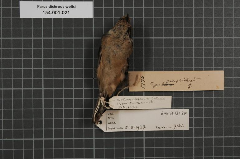 Keywords: Naturalis Biodiversity Center - RMNH.AVES.131210 2 - Parus dichrous wellsi Baker, 1917 - Paridae - bird skin specimen.jpeg artwork Dimensions artwork Document type Paridae Parus Individual count 1 Infraspecific epithet wellsi Infraspecific rank Institution Naturalis Kind of unit artwork Kind of unit specimen skin Life stage Medium artwork Nomenclatural code General remarks unreadable chinese letters on label 3Locality remark western slopes Mt Satseto Occurrence ID page Other fields Other versions artwork Permission license Naturalis donation CC-0 Publication location Scientific name Parus dichrous wellsi Baker 1917 Scientific name authorship Baker 1917 male Source url http //bioportal naturalis nl Specific epithet dichrous State or province Yunnan Subject keywords artwork Subject keywords publication Title artwork Title publication Type status Uploaded with GWToolset Naturalis_Biodiversity_Center_-_RMNH AVES 131210_2_-_Parus_dichrous_wellsi_Baker _1917_-_Paridae_-_bird_skin_specimen http //medialib naturalis nl/file/id/RMNH AVES 131210_2/format/large Media donated by Naturalis Biodiversity Center Songbird specimens at Naturalis Biodiversity Center Lophophanes dichrous museum specimens