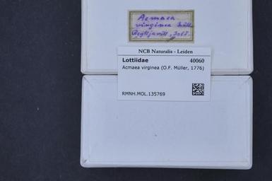 | Keywords: Naturalis Biodiversity Center - RMNH.MOL.135769 1 - Tectura virginea (Müller, 1776) - Lottiidae - Mollusc shell.jpeg artwork Dimensions artwork Document type Lottiidae Tectura Individual count Infraspecific epithet Infraspecific rank Institution Naturalis Kind of unit artwork Kind of unit specimen shell Life stage Medium artwork Nomenclatural code Source institute Leiden Scale the width of the text on the species/QR-code label is 38 mm Occurrence ID page Other fields Other versions artwork Permission license Naturalis donation CC-0 Mollusca Publication location Scientific name Tectura virginea Müller 1776 Scientific name authorship Müller 1776 Source url http //bioportal naturalis nl Specific epithet virginea State or province Subject keywords artwork Subject keywords publication Title artwork Title publication Type status Uploaded with GWToolset Naturalis_Biodiversity_Center_-_RMNH MOL 135769_1_-_Tectura_virginea_ Müller _1776 _-_Lottiidae_-_Mollusc_shell http //medialib naturalis nl/file/id/RMNH MOL 135769_1/format/large Molluscs at Naturalis from the Rijksmuseum van Natuurlijke Historie Media donated by Naturalis Biodiversity Center Tectura virginea |