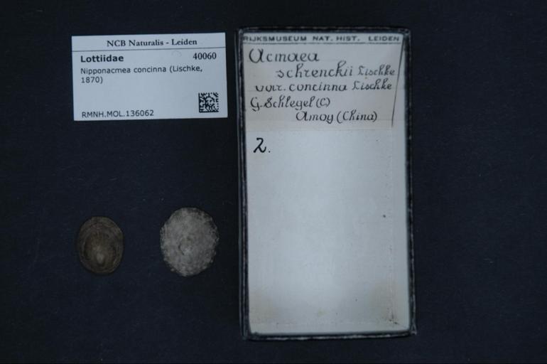 Keywords: Naturalis Biodiversity Center - RMNH.MOL.136062 - Nipponacmea concinna (Lischke, 1870) - Lottiidae - Mollusc shell.jpeg artwork Dimensions artwork Document type Lottiidae Nipponacmea Individual count Infraspecific epithet Infraspecific rank Institution Naturalis Kind of unit artwork Kind of unit specimen shell Life stage Medium artwork Nomenclatural code Source institute Leiden Scale the width of the text on the species/QR-code label is 38 mm Occurrence ID page Other fields Other versions artwork Permission license Naturalis donation CC-0 Mollusca Publication location Scientific name Nipponacmea concinna Lischke 1870 Scientific name authorship Lischke 1870 Source url http //bioportal naturalis nl Specific epithet concinna State or province Subject keywords artwork Subject keywords publication Title artwork Title publication Type status Uploaded with GWToolset Naturalis_Biodiversity_Center_-_RMNH MOL 136062_-_Nipponacmea_concinna_ Lischke _1870 _-_Lottiidae_-_Mollusc_shell http //medialib naturalis nl/file/id/RMNH MOL 136062/format/large Molluscs at Naturalis from the Rijksmuseum van Natuurlijke Historie Media donated by Naturalis Biodiversity Center Nipponacmea Nipponacmea concinna |