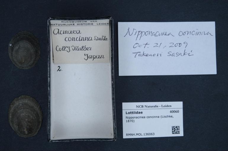Keywords: Naturalis Biodiversity Center - RMNH.MOL.136063 - Nipponacmea concinna (Lischke, 1870) - Lottiidae - Mollusc shell.jpeg artwork Dimensions artwork Document type Lottiidae Nipponacmea Individual count Infraspecific epithet Infraspecific rank Institution Naturalis Kind of unit artwork Kind of unit specimen shell Life stage Medium artwork Nomenclatural code Source institute Leiden Scale the width of the text on the species/QR-code label is 38 mm Occurrence ID page Other fields Other versions artwork Permission license Naturalis donation CC-0 Mollusca Publication location Scientific name Nipponacmea concinna Lischke 1870 Scientific name authorship Lischke 1870 Source url http //bioportal naturalis nl Specific epithet concinna State or province Subject keywords artwork Subject keywords publication Title artwork Title publication Type status Uploaded with GWToolset Naturalis_Biodiversity_Center_-_RMNH MOL 136063_-_Nipponacmea_concinna_ Lischke _1870 _-_Lottiidae_-_Mollusc_shell http //medialib naturalis nl/file/id/RMNH MOL 136063/format/large Molluscs at Naturalis from the Rijksmuseum van Natuurlijke Historie Media donated by Naturalis Biodiversity Center Nipponacmea Nipponacmea concinna |