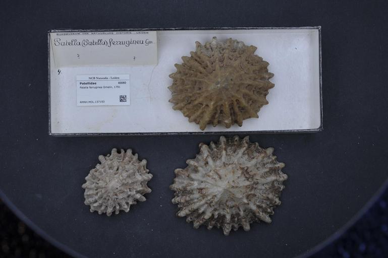 Keywords: Naturalis Biodiversity Center - RMNH.MOL.137193 - Patella ferruginea Gmelin, 1791 - Patellidae - Mollusc shell.jpeg artwork Dimensions artwork Document type Patellidae subfamily Patellinae Patella Individual count Infraspecific epithet Infraspecific rank Institution Naturalis Kind of unit artwork Kind of unit specimen shell Life stage Medium artwork Nomenclatural code Source institute Leiden Scale the width of the text on the species/QR-code label is 38 mm Occurrence ID page Other fields Other versions artwork Permission license Naturalis donation CC-0 Mollusca Publication location Scientific name Patella ferruginea Gmelin 1791 Scientific name authorship Gmelin 1791 Source url http //bioportal naturalis nl Specific epithet ferruginea State or province Subject keywords artwork Subject keywords publication Title artwork Title publication Type status Uploaded with GWToolset Naturalis_Biodiversity_Center_-_RMNH MOL 137193_-_Patella_ferruginea_Gmelin _1791_-_Patellidae_-_Mollusc_shell http //medialib naturalis nl/file/id/RMNH MOL 137193/format/large Molluscs at Naturalis from the Rijksmuseum van Natuurlijke Historie Media donated by Naturalis Biodiversity Center Patella mollusc Patella ferruginea |