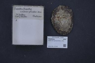 Keywords: Naturalis Biodiversity Center - RMNH.MOL.137194 - Patella ferruginea Gmelin, 1791 - Patellidae - Mollusc shell.jpeg artwork Dimensions artwork Document type Patellidae subfamily Patellinae Patella Individual count Infraspecific epithet Infraspecific rank Institution Naturalis Kind of unit artwork Kind of unit specimen shell Life stage Medium artwork Nomenclatural code Source institute Leiden Scale the width of the text on the species/QR-code label is 38 mm Occurrence ID page Other fields Other versions artwork Permission license Naturalis donation CC-0 Mollusca Publication location Scientific name Patella ferruginea Gmelin 1791 Scientific name authorship Gmelin 1791 Source url http //bioportal naturalis nl Specific epithet ferruginea State or province Subject keywords artwork Subject keywords publication Title artwork Title publication Type status Uploaded with GWToolset Naturalis_Biodiversity_Center_-_RMNH MOL 137194_-_Patella_ferruginea_Gmelin _1791_-_Patellidae_-_Mollusc_shell http //medialib naturalis nl/file/id/RMNH MOL 137194/format/large Molluscs at Naturalis from the Rijksmuseum van Natuurlijke Historie Media donated by Naturalis Biodiversity Center Patella mollusc Patella ferruginea |