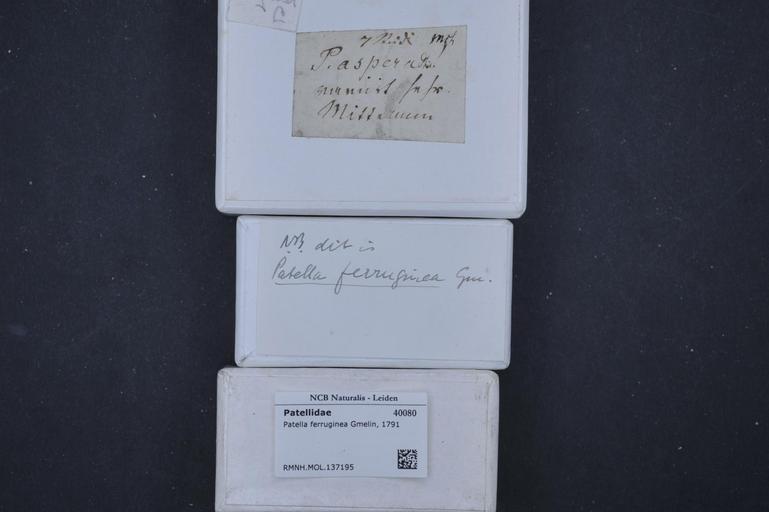 Keywords: Naturalis Biodiversity Center - RMNH.MOL.137195 1 - Patella ferruginea Gmelin, 1791 - Patellidae - Mollusc shell.jpeg artwork Dimensions artwork Document type Patellidae subfamily Patellinae Patella Individual count Infraspecific epithet Infraspecific rank Institution Naturalis Kind of unit artwork Kind of unit specimen shell Life stage Medium artwork Nomenclatural code Source institute Leiden Scale the width of the text on the species/QR-code label is 38 mm Occurrence ID page Other fields Other versions artwork Permission license Naturalis donation CC-0 Mollusca Publication location Scientific name Patella ferruginea Gmelin 1791 Scientific name authorship Gmelin 1791 Source url http //bioportal naturalis nl Specific epithet ferruginea State or province Subject keywords artwork Subject keywords publication Title artwork Title publication Type status Uploaded with GWToolset Naturalis_Biodiversity_Center_-_RMNH MOL 137195_1_-_Patella_ferruginea_Gmelin _1791_-_Patellidae_-_Mollusc_shell http //medialib naturalis nl/file/id/RMNH MOL 137195_1/format/large Molluscs at Naturalis from the Rijksmuseum van Natuurlijke Historie Media donated by Naturalis Biodiversity Center Patella mollusc Patella ferruginea |