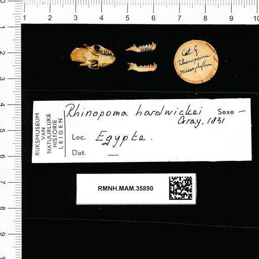 Keywords: Naturalis Biodiversity Center - RMNH.MAM.35890 pal - Rhinopoma hardwickii - skull.jpeg artwork Dimensions artwork Document type Rhinopoma Individual count 1 Infraspecific epithet Infraspecific rank Institution Naturalis Kind of unit artwork Kind of unit specimen skull Life stage Medium artwork Nomenclatural code Occurrence ID page Other fields Other versions artwork Permission license Naturalis donation CC-0 Publication location Scientific name Rhinopoma hardwickii Scientific name authorship Source url http //bioportal naturalis nl Specific epithet hardwickii State or province Subject keywords artwork Subject keywords publication Title artwork Title publication Type status Uploaded with GWToolset Naturalis_Biodiversity_Center_-_RMNH MAM 35890_pal_-_Rhinopoma_hardwickii_-_skull http //medialib naturalis nl/file/id/RMNH MAM 35890_pal/format/large Media donated by Naturalis Biodiversity Center Mammals at Naturalis from the Rijksmuseum van Natuurlijke Historie Rhinopoma hardwickii Rhinopoma |