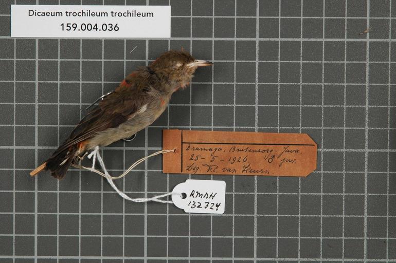 | Keywords: Naturalis Biodiversity Center - RMNH.AVES.132324 1 - Dicaeum trochileum trochileum Sparrman, 1789 - Dicaeidae - bird skin specimen.jpeg artwork Dimensions artwork Document type Dicaeidae Dicaeum Individual count 1 Infraspecific epithet trochileum Infraspecific rank Institution Naturalis Kind of unit artwork Kind of unit specimen skin Life stage Indonesia Java Buitenzorg Dramaga Medium artwork Nomenclatural code Occurrence ID page Other fields Other versions artwork Permission license Naturalis donation CC-0 Publication location Scientific name Dicaeum trochileum trochileum Sparrman 1789 Scientific name authorship Sparrman 1789 male Source url http //bioportal naturalis nl Specific epithet trochileum State or province Subject keywords artwork Subject keywords publication Title artwork Title publication Type status Uploaded with GWToolset Naturalis_Biodiversity_Center_-_RMNH AVES 132324_1_-_Dicaeum_trochileum_trochileum_Sparrman _1789_-_Dicaeidae_-_bird_skin_specimen http //medialib naturalis nl/file/id/RMNH AVES 132324_1/format/large Media donated by Naturalis Biodiversity Center Songbird specimens at Naturalis Biodiversity Center Dicaeum trochileum Dicaeum |
