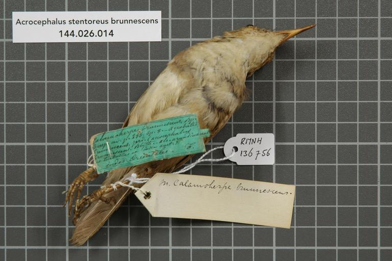 | Keywords: Naturalis Biodiversity Center - RMNH.AVES.136756 2 - Acrocephalus stentoreus brunnescens (Jerdon, 1839) - Sylviidae - bird skin specimen.jpeg artwork Dimensions artwork Document type Sylviidae Acrocephalus Individual count 1 Infraspecific epithet brunnescens Infraspecific rank Institution Naturalis Kind of unit artwork Kind of unit specimen skin Life stage Engelsch Indie Medium artwork Nomenclatural code Additional identification info turdoides ex india auct Country remark On old green label Indes Orientales Occurrence ID page Other fields Other versions artwork Permission license Naturalis donation CC-0 Publication location Scientific name Acrocephalus stentoreus brunnescens Jerdon 1839 Scientific name authorship Jerdon 1839 male Source url http //bioportal naturalis nl Specific epithet stentoreus State or province Subject keywords artwork Subject keywords publication Title artwork Title publication Type status Uploaded with GWToolset Naturalis_Biodiversity_Center_-_RMNH AVES 136756_2_-_Acrocephalus_stentoreus_brunnescens_ Jerdon _1839 _-_Sylviidae_-_bird_skin_specimen http //medialib naturalis nl/file/id/RMNH AVES 136756_2/format/large Media donated by Naturalis Biodiversity Center Songbird specimens at Naturalis Biodiversity Center Acrocephalus stentoreus museum specimens |