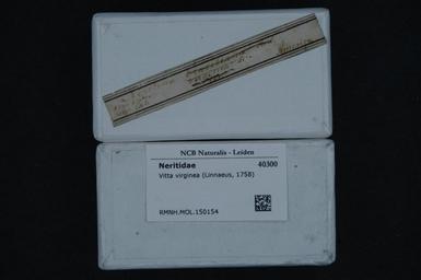 | Keywords: Naturalis Biodiversity Center - RMNH.MOL.150154 1 - Vitta virginea (Linnaeus, 1758) - Neritidae - Mollusc shell.jpeg artwork Dimensions artwork Document type Neritidae Vitta Individual count Infraspecific epithet Infraspecific rank Institution Naturalis Kind of unit artwork Kind of unit specimen shell Life stage Medium artwork Nomenclatural code Scale the width of the text on the species/QR-code label is 38 mm Occurrence ID page Other fields Other versions artwork Permission license Naturalis donation CC-0 Mollusca Publication location Scientific name Vitta virginea Linnaeus 1758 Scientific name authorship Linnaeus 1758 Source url http //bioportal naturalis nl Specific epithet virginea State or province Subject keywords artwork Subject keywords publication Title artwork Title publication Type status Uploaded with GWToolset Naturalis_Biodiversity_Center_-_RMNH MOL 150154_1_-_Vitta_virginea_ Linnaeus _1758 _-_Neritidae_-_Mollusc_shell http //medialib naturalis nl/file/id/RMNH MOL 150154_1/format/large Media donated by Naturalis Biodiversity Center Molluscs at Naturalis from the Rijksmuseum van Natuurlijke Historie Vitta virginea |