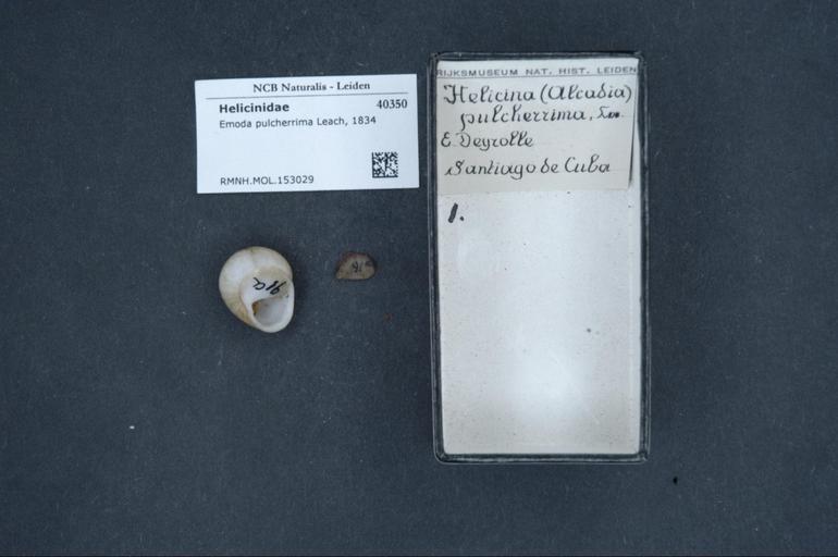 | Keywords: Naturalis Biodiversity Center - RMNH.MOL.153029 - Emoda pulcherrima Leach, 1834 - Helicinidae - Mollusc shell.jpeg  artwork Dimensions artwork Document type Helicinidae Emoda Individual count Infraspecific epithet Infraspecific rank Institution Naturalis Kind of unit artwork Kind of unit specimen shell Life stage Medium artwork Nomenclatural code Scale the width of the text on the species/QR-code label is 38 mm Occurrence ID page Other fields Other versions artwork Permission license Naturalis donation CC-0 Mollusca Publication location Scientific name Emoda pulcherrima Leach 1834 Scientific name authorship Leach 1834 Source url http //bioportal naturalis nl Specific epithet pulcherrima State or province Subject keywords artwork Subject keywords publication Title artwork Title publication Type status Uploaded with GWToolset Naturalis_Biodiversity_Center_-_RMNH MOL 153029_-_Emoda_pulcherrima_Leach _1834_-_Helicinidae_-_Mollusc_shell http //medialib naturalis nl/file/id/RMNH MOL 153029/format/large Media donated by Naturalis Biodiversity Center Molluscs at Naturalis from the Rijksmuseum van Natuurlijke Historie Emoda pulcherrima Emoda |