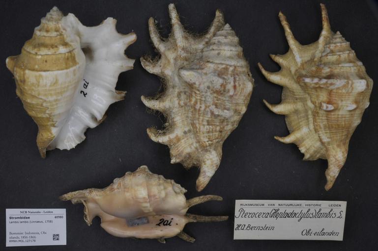 | Keywords: Naturalis Biodiversity Center - RMNH.MOL.127179 - Lambis lambis (Linnaeus, 1758) - Strombidae - Mollusc shell.jpeg artwork Dimensions artwork Document type Strombidae Lambis Individual count Infraspecific epithet Infraspecific rank Institution Naturalis Kind of unit artwork Kind of unit specimen shell Life stage Bernstein Indonesia Obi islands; 1856-1866 Medium artwork Nomenclatural code Source institute Leiden Scale the width of the text on the species/QR-code label is 38 mm Occurrence ID page Other fields Other versions artwork Permission license Naturalis donation CC-0 Mollusca Publication location Scientific name Lambis lambis Linnaeus 1758 Scientific name authorship Linnaeus 1758 Source url http //bioportal naturalis nl Specific epithet lambis State or province Subject keywords artwork Subject keywords publication Title artwork Title publication Type status Uploaded with GWToolset Naturalis_Biodiversity_Center_-_RMNH MOL 127179_-_Lambis_lambis_ Linnaeus _1758 _-_Strombidae_-_Mollusc_shell http //medialib naturalis nl/file/id/RMNH MOL 127179/format/large Molluscs at Naturalis from the Rijksmuseum van Natuurlijke Historie Media donated by Naturalis Biodiversity Center Lambis Lambis lambis |
