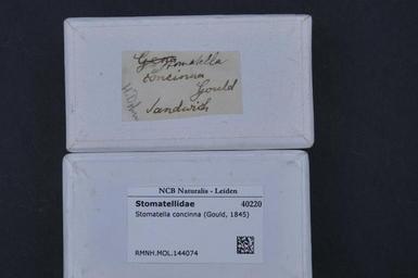 Keywords: Naturalis Biodiversity Center - RMNH.MOL.144074 1 - Stomatella concinna (Gould, 1845) - Stomatellidae - Mollusc shell.jpeg artwork Dimensions artwork Document type Stomatellidae Stomatella Individual count Infraspecific epithet Infraspecific rank Institution Naturalis Kind of unit artwork Kind of unit specimen shell Life stage Medium artwork Nomenclatural code Source institute Leiden Scale the width of the text on the species/QR-code label is 38 mm Occurrence ID page Other fields Other versions artwork Permission license Naturalis donation CC-0 Mollusca Publication location Scientific name Stomatella concinna Gould 1845 Scientific name authorship Gould 1845 Source url http //bioportal naturalis nl Specific epithet concinna State or province Subject keywords artwork Subject keywords publication Title artwork Title publication Type status Uploaded with GWToolset Naturalis_Biodiversity_Center_-_RMNH MOL 144074_1_-_Stomatella_concinna_ Gould _1845 _-_Stomatellidae_-_Mollusc_shell http //medialib naturalis nl/file/id/RMNH MOL 144074_1/format/large Molluscs at Naturalis from the Rijksmuseum van Natuurlijke Historie Media donated by Naturalis Biodiversity Center Stomatella Stomatella concinna |