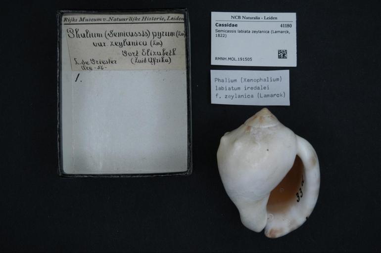 | Keywords: Naturalis Biodiversity Center - RMNH.MOL.191505 - Semicassis labiata zeylanica (Lamarck, 1822) - Cassidae - Mollusc shell.jpeg  artwork Dimensions artwork Document type Cassidae subfamily Phaliinae Semicassis Individual count Infraspecific epithet zeylanica Infraspecific rank Institution Naturalis Kind of unit artwork Kind of unit specimen shell Life stage Medium artwork Nomenclatural code Source institute Rijksmuseum van Natuurlijke Historie Leiden Scale the width of the text on the species/QR-code label is 38 mm Occurrence ID page Other fields Other versions artwork Permission license Naturalis donation CC-0 Mollusca Publication location Scientific name Semicassis labiata zeylanica Lamarck 1822 Scientific name authorship Lamarck 1822 Source url http //bioportal naturalis nl Specific epithet labiata State or province Subject keywords artwork Subject keywords publication Title artwork Title publication Type status Uploaded with GWToolset Naturalis_Biodiversity_Center_-_RMNH MOL 191505_-_Semicassis_labiata_zeylanica_ Lamarck _1822 _-_Cassidae_-_Mollusc_shell http //medialib naturalis nl/file/id/RMNH MOL 191505/format/large Media donated by Naturalis Biodiversity Center Molluscs at Naturalis from the Rijksmuseum van Natuurlijke Historie Semicassis labiata Semicassis |