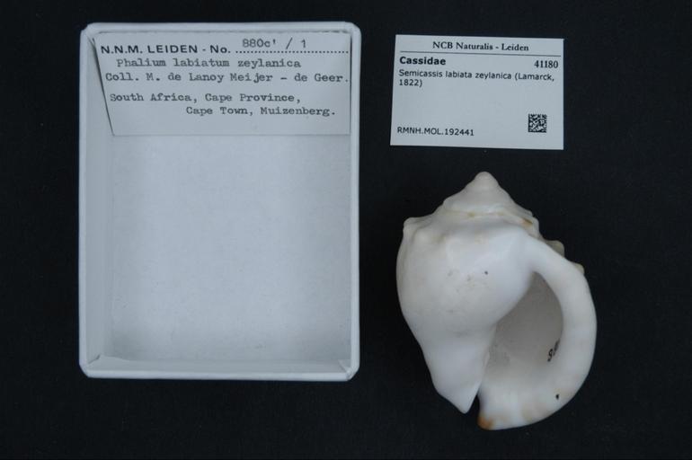 | Keywords: Naturalis Biodiversity Center - RMNH.MOL.192441 - Semicassis labiata zeylanica (Lamarck, 1822) - Cassidae - Mollusc shell.jpeg  artwork Dimensions artwork Document type Cassidae subfamily Phaliinae Semicassis Individual count Infraspecific epithet zeylanica Infraspecific rank Institution Naturalis Kind of unit artwork Kind of unit specimen shell Life stage Medium artwork Nomenclatural code Source institute Rijksmuseum van Natuurlijke Historie Leiden Scale the width of the text on the species/QR-code label is 38 mm Occurrence ID page Other fields Other versions artwork Permission license Naturalis donation CC-0 Mollusca Publication location Scientific name Semicassis labiata zeylanica Lamarck 1822 Scientific name authorship Lamarck 1822 Source url http //bioportal naturalis nl Specific epithet labiata State or province Subject keywords artwork Subject keywords publication Title artwork Title publication Type status Uploaded with GWToolset Naturalis_Biodiversity_Center_-_RMNH MOL 192441_-_Semicassis_labiata_zeylanica_ Lamarck _1822 _-_Cassidae_-_Mollusc_shell http //medialib naturalis nl/file/id/RMNH MOL 192441/format/large Media donated by Naturalis Biodiversity Center Molluscs at Naturalis from the Rijksmuseum van Natuurlijke Historie Semicassis labiata Semicassis |